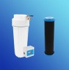 Il s’agit d'un système complet qui se fixe directement sur le robinet et laisse passer l’eau sous pression qui passe dans une cartouche de charbon dense.